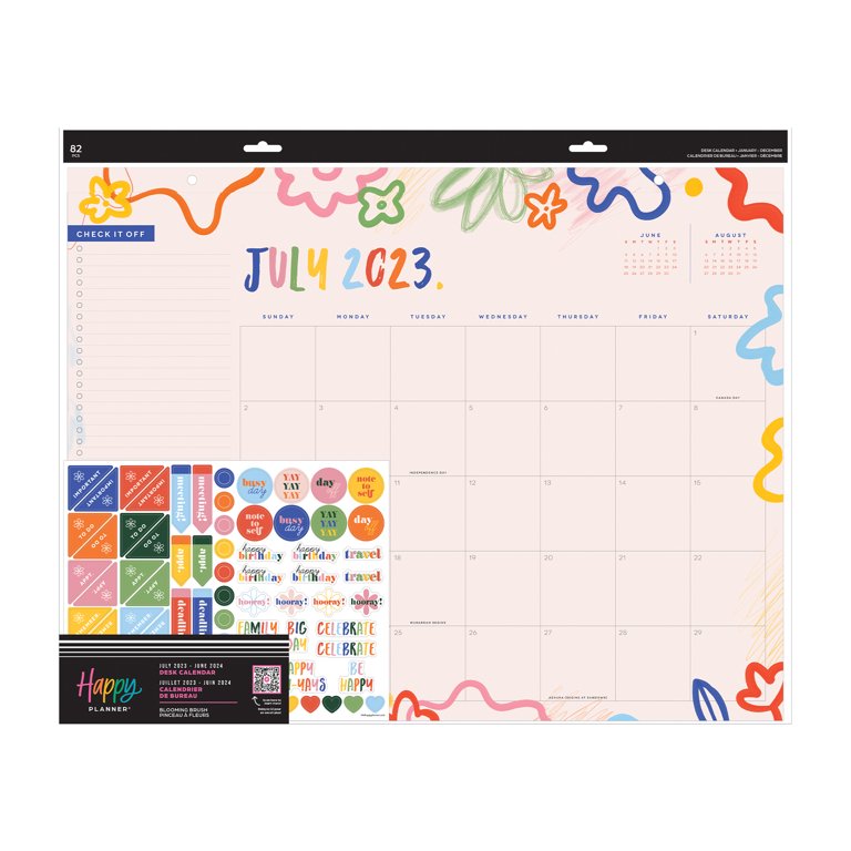 Happy Planner, Weekly/Monthly Desk Calendar, Blooming Brush, 18 x